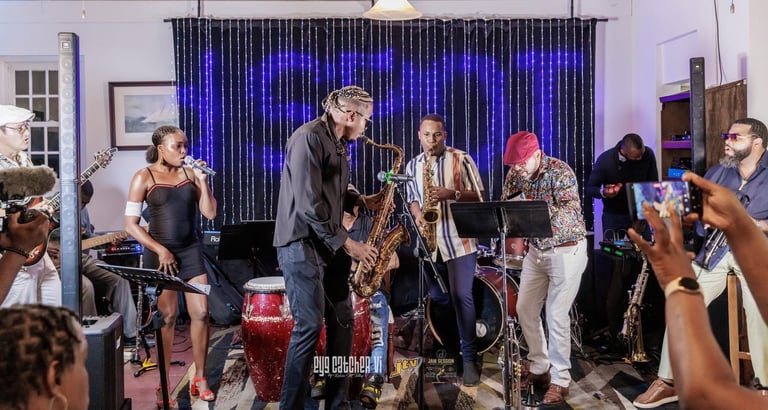 The Smuggling Suitcase jamming with the Grammy Award winners Dion Parson (USA) and Melvin Jones (USA), presented by the outstanding bvislanders artists Kamau Georges and Dalan Vanterpool.