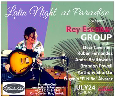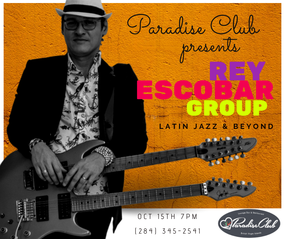.Dec/30 with Rey Escobar's Trio, at Pavilion Rosewood Little Dix Bay Resort, Virgin Gorda. 6:30pm.