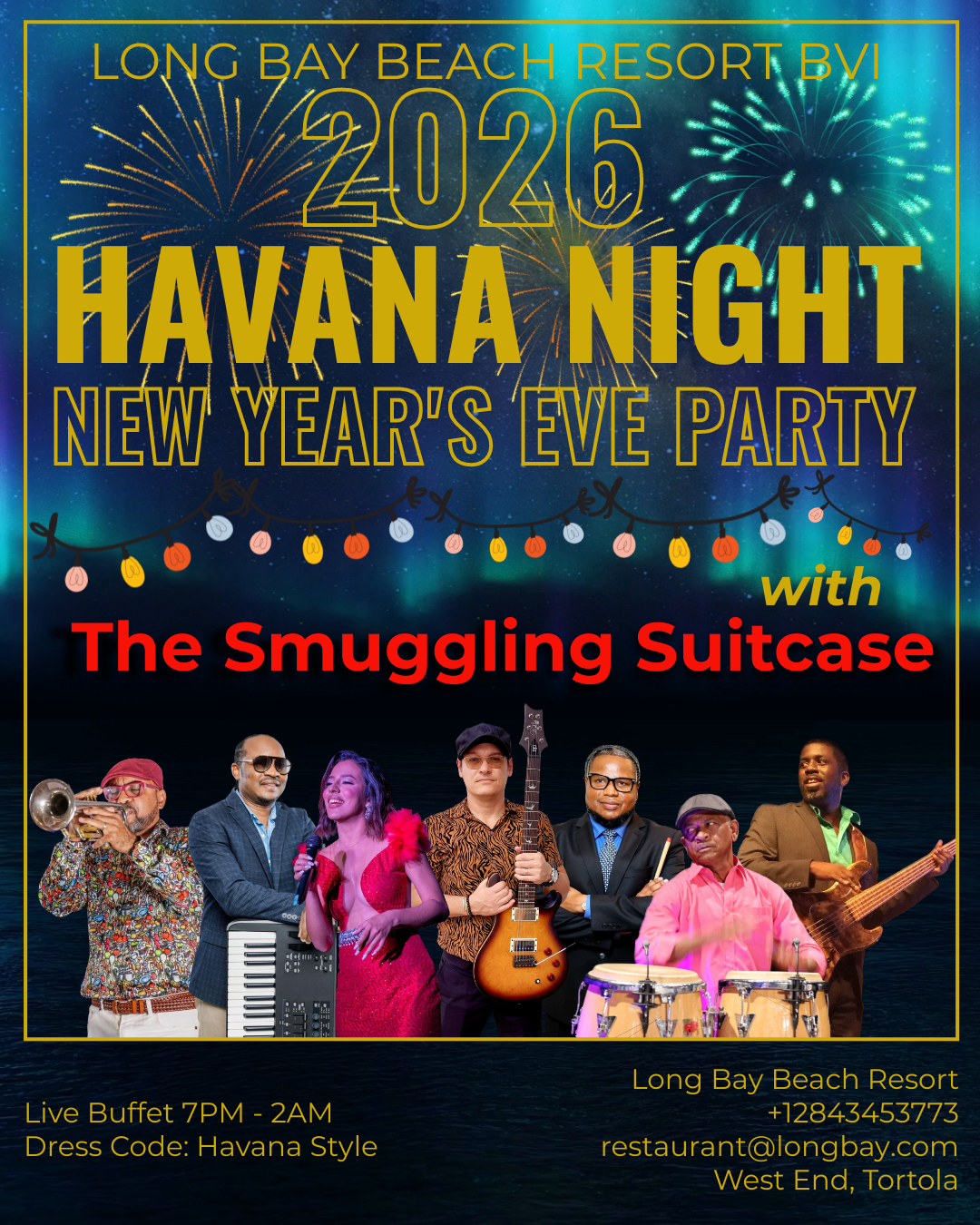 .Dec/31 with Rey Escobar & The Smuggling Suitcase, at Long Bay Beach Resort, Tortola. 9:00pm.